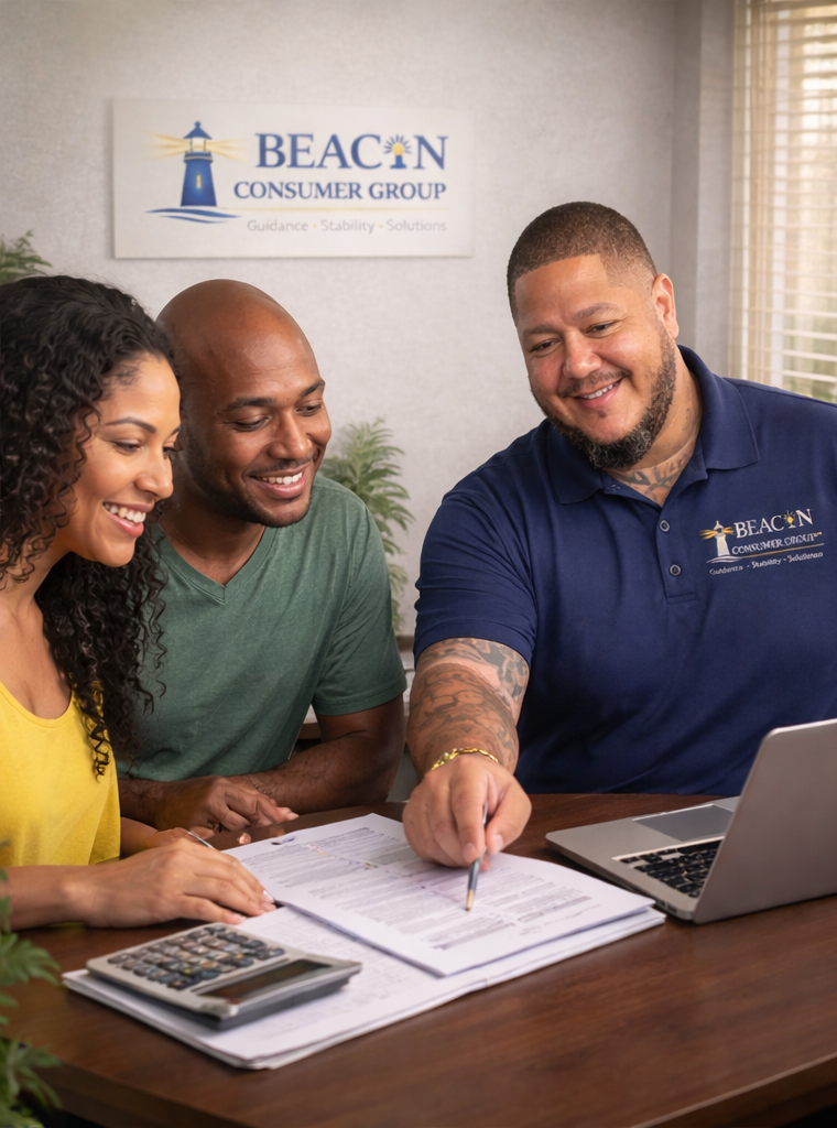 At Beacon Consumer Group, our mission is to guide individuals and businesses toward stronger financial stability and smarter financial decisions. Just like a beacon provides direction through uncertainty, our team provides expert guidance to help clients navigate taxes, credit challenges, and business finances.